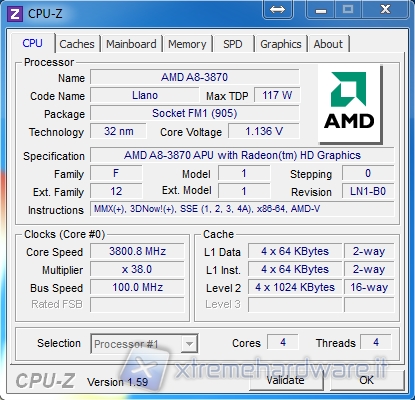 Notiamo che il precedente test, quello sull’A8-3850, era stato effettuato portando il voltaggio a 1,5V; teniamo a precisare che anche portando il voltaggio a quella soglia, l’A8-3870K non ci ha permesso di chiudere nessun bench ad una frequenza maggiore di 3708MHz.